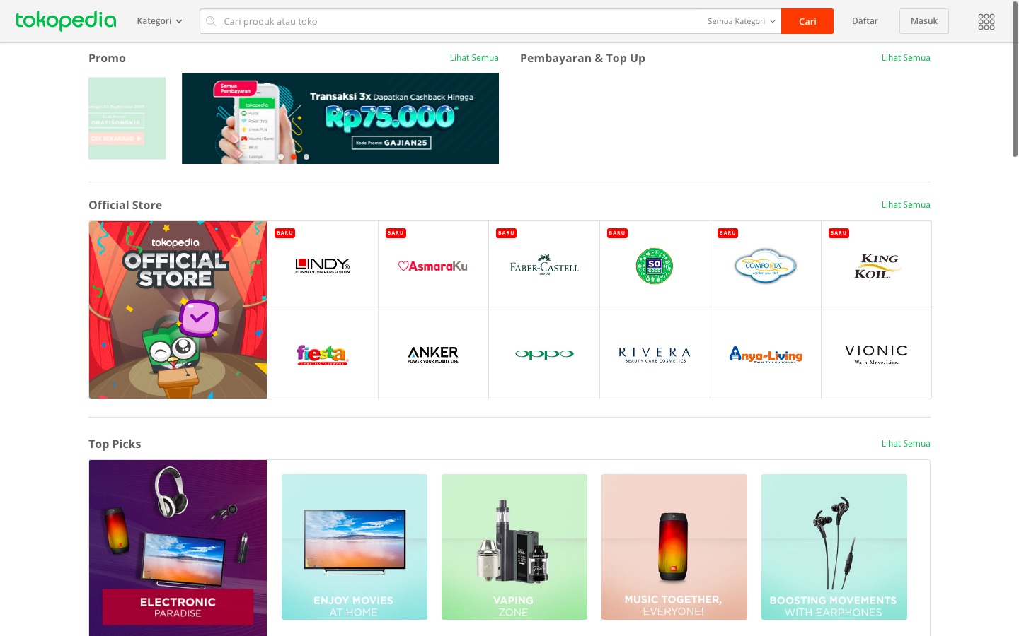 Bisa kita lihat dari sisi tampilan berbeda. TOKOPEDIA lebih memunculkan merchant store-nya, artinya TOKOPEDIA lebih banyak meng-endorse dari sisi merchant, lebih banyak merchant artinya lebih banyak buyer. Seperti konsep “ada gula ada semut” jadi lebih banyak di penjualnya daripada pembelinya. Ingin sukses di online, ikut jadi merchant dari Tokopedia.